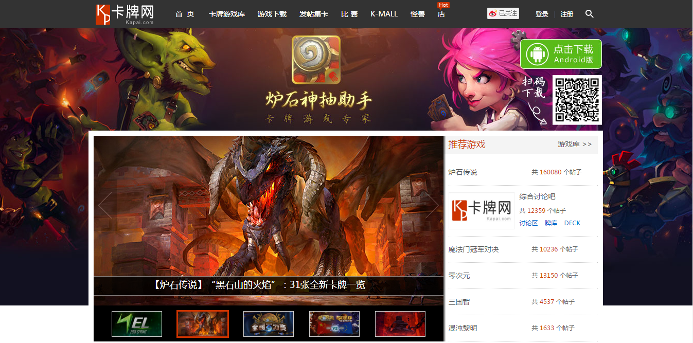卡牌游戏垂直社交平台,集游戏库,论坛,比赛等一体的专业社交平台